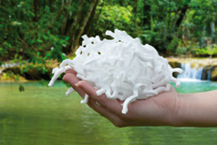Rapon Locken werden zum Beispiel vor Ölsperren auf Gewässern eingesetzt. Durch ihre spezielle Form verhaken sie sich ineinander und lassen sich dadurch einfach abschöpfen.