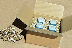 Mit den unbrennbaren Perleen B15 Verpackungskissen lassen sich Gefahrstoffe staubarm und sicher verpacken.